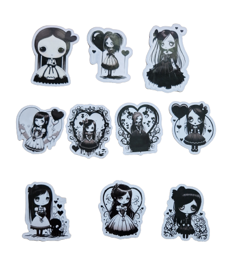 Stickers zijn 6.5-8.5 cm hoog en 5.5 cm breed.