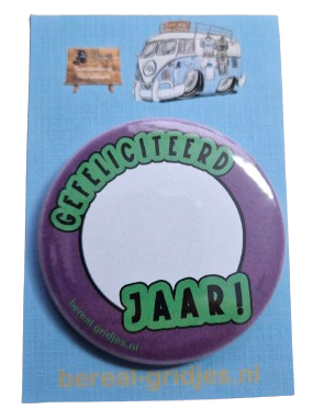 Button met gefeliciteerd .. jaar.Hier kunt u zelf de leeftijd aangeven die erop moet komen.