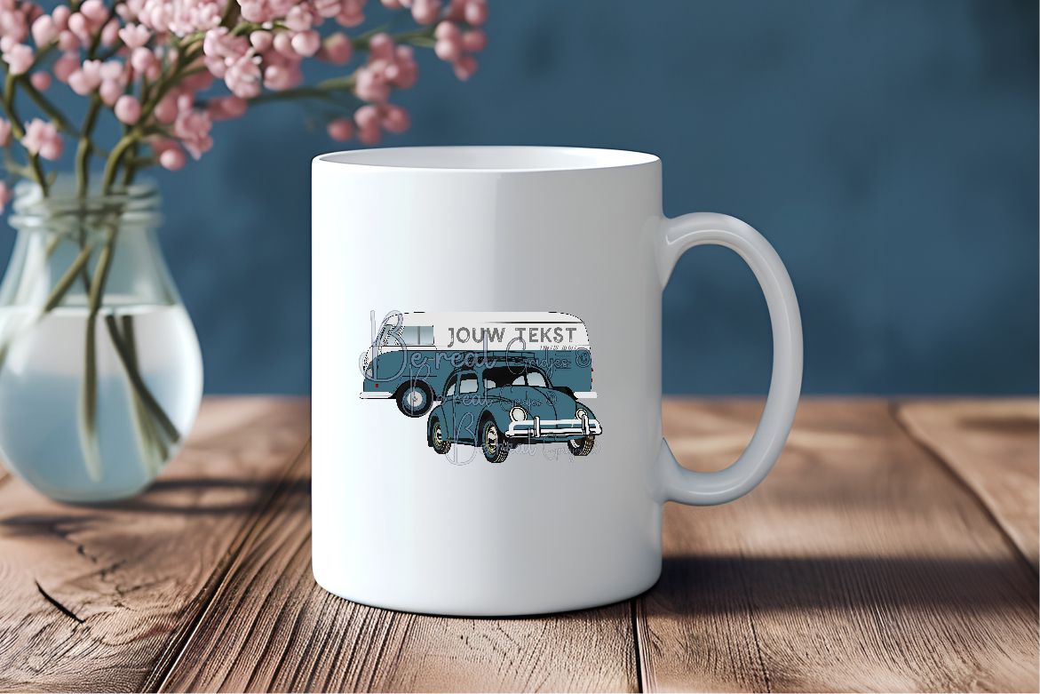 T1 bus met een kever in je eigen kleur maar ook met je eigen tekst.